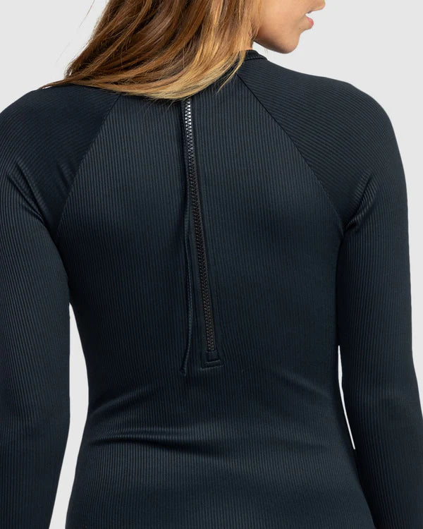 Slip into sleek style with this modern rash guard. Crafted from soft, recycled nylon elastane, it offers resistant stretch for aquatic adventures and active days. The fitted design and elegant metal logo plate blend fashion with function, while the full lining ensures comfort while you move from sand to surf and beyond.